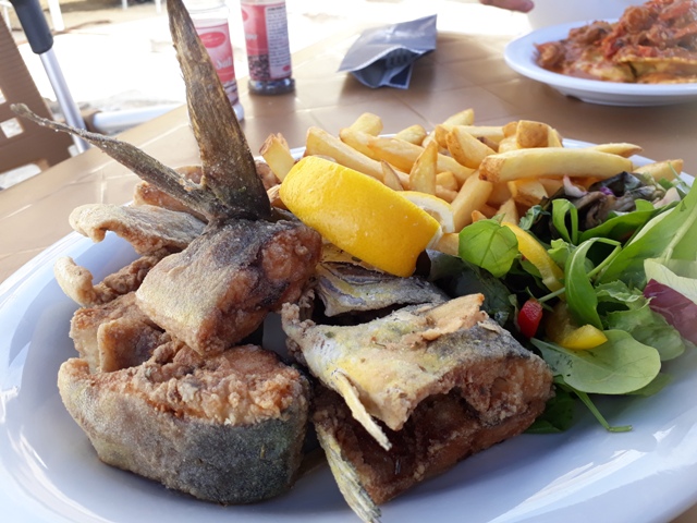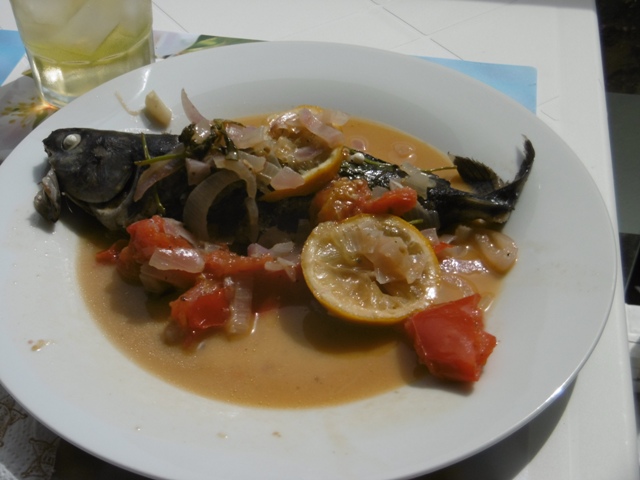 Nous retournons au Kiosk Fajtata de la Baie de Saint Thomas. Là je nage en toute confiance à l’abri des flotteurs. Fish&chips.