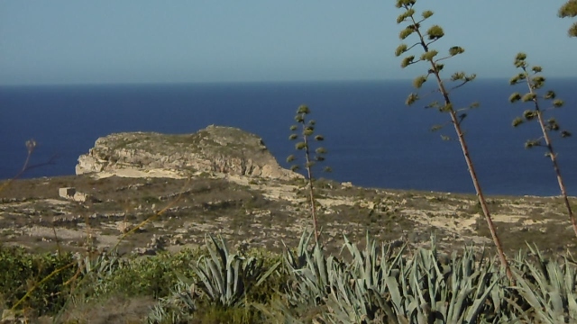 De Munxar on passe presque sans transition à Sannat, contourne la grande église. Les falaises sont à la sortie du village. Il faut garer la voiture près d’un jardin public et traverser un no man’s land encombré de fenouils géants. Les falaises sont encore plus hautes que celles de Xlendi. Il me semble apercevoir Comino et Malte mais c’est peut être la côte sud de Gozo. Le sentier côtier passe ici. Deux personnes confirment qu’on peut arriver à Xlendi en suivant les points rouges. Un chasseur est à l’affût assis sur une chaise de bureau rembourrée fixée derrière un muret.