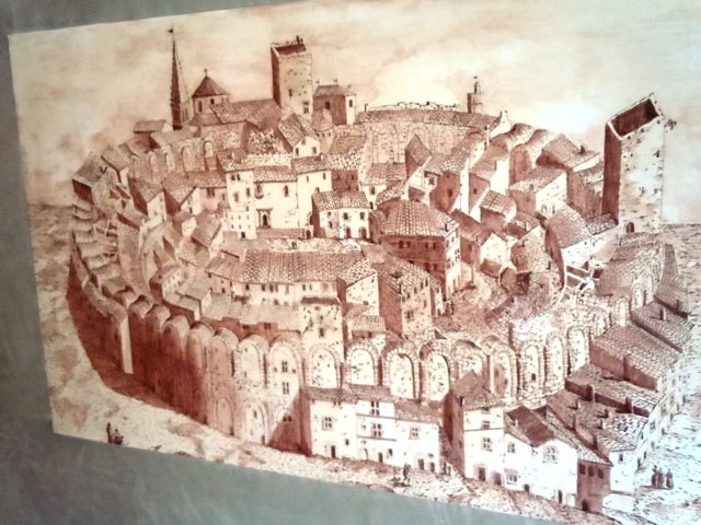 Une maquette reconstitue la meunerie hydraulique de Barbegal près de Fontvieille. : 16 meules meunières installées sur 8 niveaux, actionnées par l’eau.