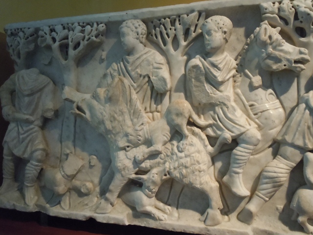 Les sarcophages très finement sculptés racontent des scènes de chasse, des courses de chevaux, des thèmes classiques ou mythologiques comme Phèdre et Hippolyte, ou plus tard des histoires chrétiennes, une nativité, des apôtres et évangélistes….