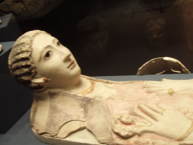 Le fort Qaitbay est cosntruit sur l’emplacement de l’ancien Phare. C’est une citadelle de pierre claire. Deux tours flanquent le porche. Il y a des créneaux, des meurtrières. Tout pour faire un joli château sur la mer bleue et agitée. L’esplanade, en face du port est peuplée. Toute une foule, principalement des Egyptiens, se presse et achète des souvenirs : pharaons métalliques ou en plastique, mugs aux motifs antiques ou coquillages collés, et autres souvenirs balnéaires.