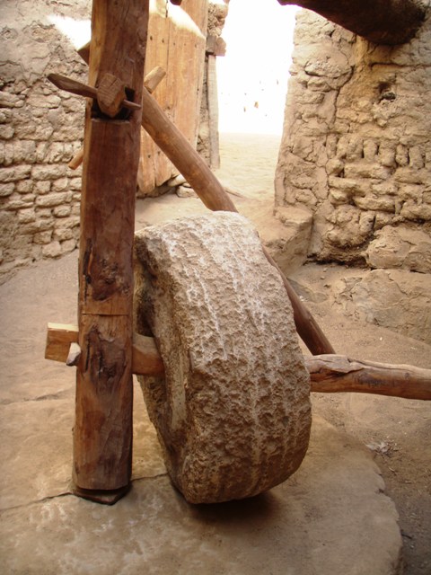 J’aime beaucoup les personnages en terre qui raconte tout un monde : les vieillards au café, les artisans travaillant le bois ou la laine. A part, dans une autre pièce, comme il se doit, les femmes au travail : deux d’entre elles actionnent une meule, une autre en habit coloré pile..