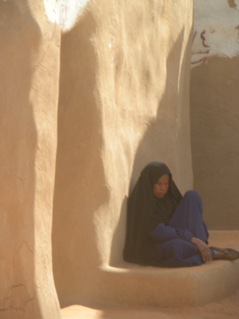 avec ses murs peints en rose, jaune et blanc, son sol tapissé de sable fin . Vieillards et enfants sont assis à même le sol (comme à la plage). Des bassines sont sorties. A notre approche les femmes ne s’enfuient pas, au contraire elles nous abordent avec des chapeaux de paille et d’affreux bijoux en plastique, pas de l’artisanat local comme elles le prétendent. A chaque coin de rue, un étal improvisé propose cette même marchandise. Le village est si joli avec ses murs colorés, les effets d’ombre et de lumière tamisée par les palmes et les clairevoies.
