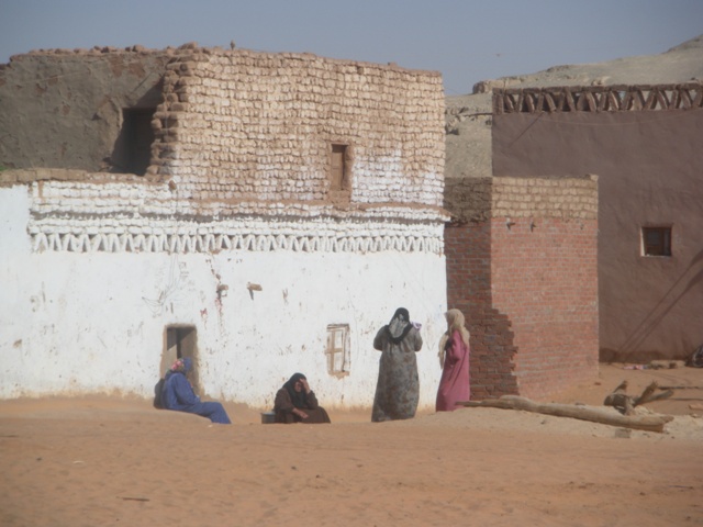 Un vieil homme en galabieh sombre et en caffyiah à damier rouge s’approche et se présente : c’est le gardien des tombes. Le village est très propre