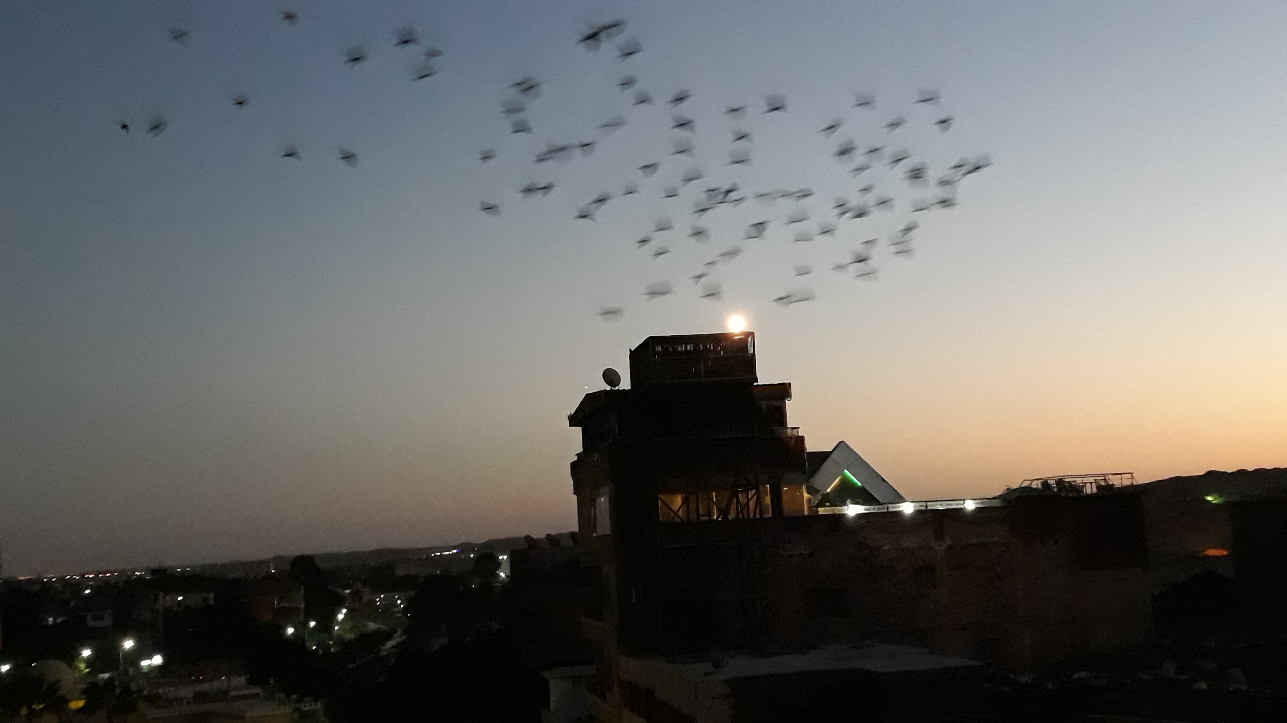 Giza : vol de pigeons au coucher du soleil