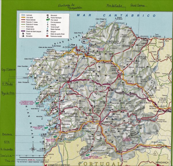 Traversons une ria, arrivons en Galice, et obliquons vers la mer en suivant un panneau «