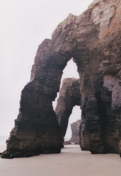Nous poussons jusqu’au port d’un tout petit village qui pourrait être breton ou irlandais avec les petits jardins bien protégés par les murs d’ardoise sèche : oignons, pommes de terre, haricots sont sagement bêchés. Les filets sèchent au sommet des murs. Sous un ciel bleu, j’aurais été tentée de prendre des photos. Seule caractéristique typique de la Galice : les greniers à maïs rectangulaires aérés par des fentes verticales, sur pilotis, coiffés d’étranges pointes. Ils ressemblent aux Espigeiros portugais. Le Gallego ressemble au portugais : plage se dit Praia. Je reconnais d’autres mots mais j’ai plus de mal à comprendre les gens. Ce n’est pas fameux pour mes progrès en Espagnol.