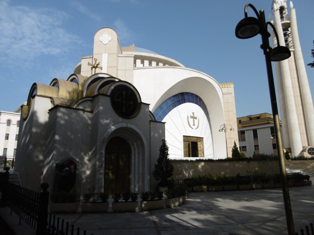 L’église Saint Dimitri qui est en face de la mosquée, est toute neuve avec une belle iconostase et un lustre impressionnant à l’aplomb de la rosace marquetée au sol. Très grande du dehors, l’intérieur paraît plutôt intime.