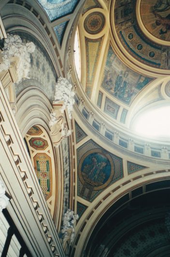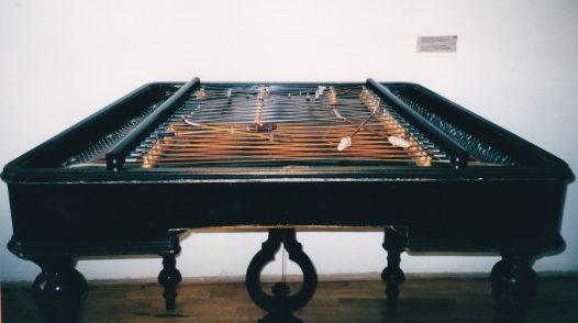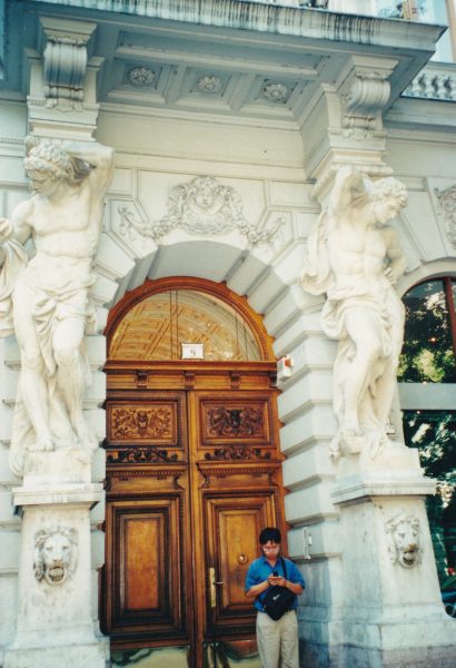 La pianiste est une grande et grosse blonde aux cheveux crêpés, très maquillée, en robe longue grenat. Elle a passé sa tête entre les rideaux et a l’air morte de trac. Comme s’il ne faisait pas assez chaud, on ferme fenêtres et rideaux. Je dégouline. La pianiste commence à massacrer Beethoven, la Pathétique. Dominique qui l’a jouée, relève les fausses notes, et met certaines sur le compte des doigts qui glissent avec la chaleur. Ensuite au programme, la grande Polonaise, Dominique me donne des coups de coudes, « c’est trop difficile, elle n’y arrivera jamais« . Malgré le lieu mythique nous n’assistons pas à un concert exceptionnel. Viennent ensuite des pièces de Kodaly que nous ne connaissons pas, Dominique a envie de partir, moi, je veux attendre Liszt. On se sauve entre deux mouvements et écoutons la fin du concert dans l’entré e où la fenêtre ouverte donne un bon courant d’air. Bizarre impression, quand on ne voit plus la grosse dondon avec ses chairs molles qui tremblent, la musique est plus belle.