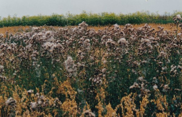 Un peu plus loin, c’est le marais avec ses roseaux. Un héron plane quelques temps, un autre est posé sur le sentier, fin et élégant. La monotonie de la plaine est largement compensée par la variété de la faune. Un campagnol fuit sous nos pieds. Nous levons un faisan d’un buisson d’herbes sèches, il s’envole en me rasant la tête bruyamment. En limite de Parc, les cultures reprennent le pas sur la steppe, des hommes ramassent les dernières bottes de paille. Dans un champ retourné des centaines d’oiseaux blancs : des mouettes.