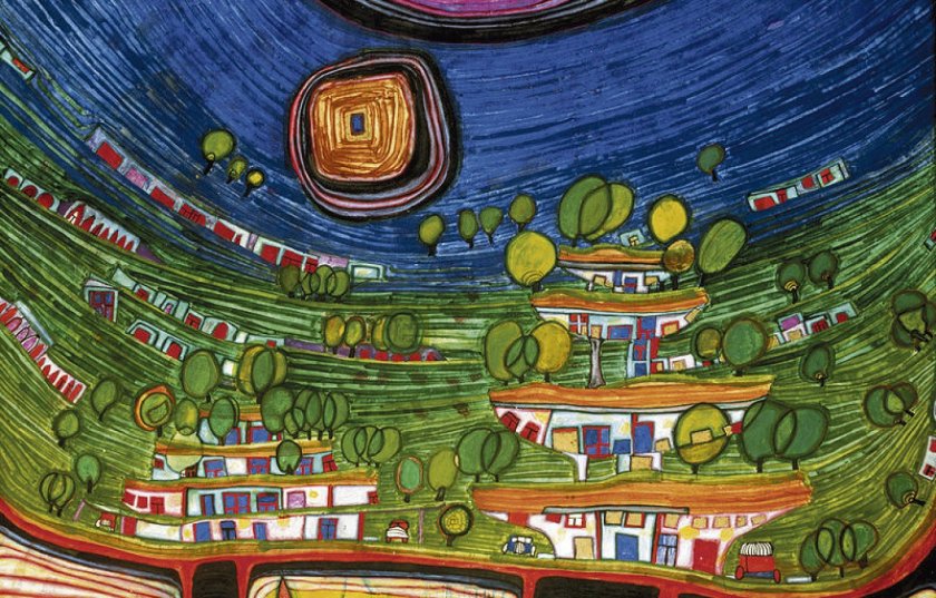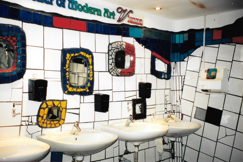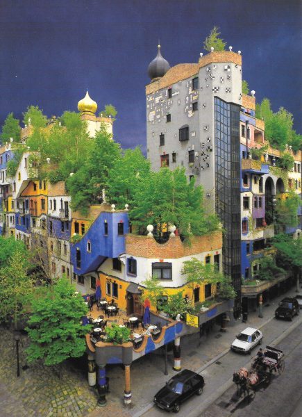 En quelques stations de métro nous rejoignons les faubourgs de Vienne la Rouge pour visiter l’ensemble architectural du KarlMarxHof, nous sommes un peu déçues : l’énorme barre d’un kilomètre de long n’est pas visible dans son ensemble, nous n’avons pas le recul nécessaire. On se contente d’une vue partielle de HLM rouge et jaune, sobre, mais on sent la volonté de l’urbaniste de placer des statues dans une cité ouvrière. On se demande bien pourquoi André a recommandé cette visite.