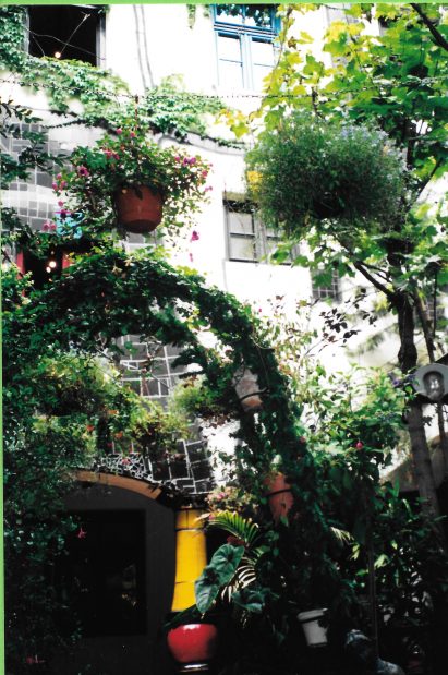 La terrasse fleurie du café Schubert a un aspect campagnard, en dehors du temps, loin de la circulation du Ring, pourtant à un jet de pierre, des magasins classieux du quartier, loin des excès architecturaux de la fin du XIXè. Les maisons XVIIIème de couleur pastel ont des guirlandes, un médaillon peint ovale représente les trois Mädel de la garçonnière de Schubert.