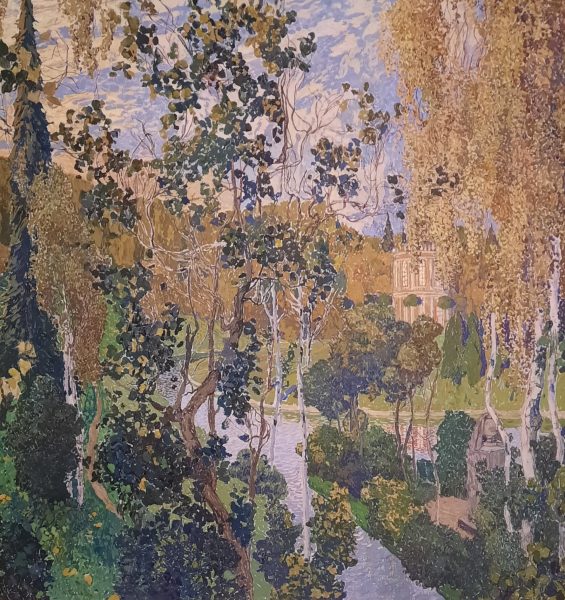 Une salle entière est consacrée à Sisley, Pissaro, des petits formats de paysages de Louveciennes ou de Pontoise, la surprise vient d’un peintre russe Korovine : ubn café à Paris et d’un merveilleux paysage de Golovine