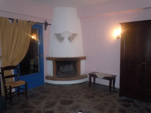 19 marches raides mènent au balcon. Notre chambre est au bout. Une vieille clé ouvre la porte de bois. La pièce est très grande, les murs roses, les meubles paysans simple de bois foncé, paysans. La belle cheminée d’angle arrondie, à l’âtre surélevé, paraît être fonctionnelle. Petite télé sur le frigo blanc sans façon. Pour décoration, des broderies, au dessus de la cheminée et une nappe sous verre. Le sol est dallé de belle pierres grises, luisantes, aux formes irrégulières.