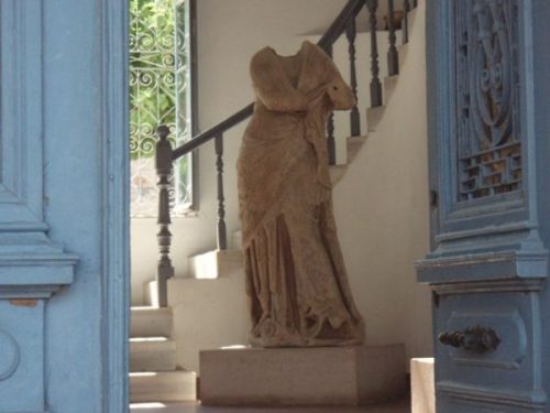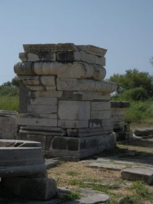 Une ville romaine prospéra aussi à Samos. Un monument exèdre était consacré aux frères Cicéron : Quintus Tullius le gouverneur de la Province et Marcus Tullius que nous connaissons bien. Avec les romains l’Histoire raconte de sombres histoires d’argent : détournement, vol de terres connus par les plaidoiries de Cicéron mais aussi , sous Tibère, la ville s’enrichit considérablement quand l’Empereur donna à l’Héraion le droit d’asile. De riches citoyens, pour éviter les taxes – installèrent tout un quartier de magnifiques villas dans son enceinte. Les villas ont été fouillées mais recouvertes de terre pour protéger les vestiges. On ne voit donc que de hautes graminées de part d’autre de la Voie Sacrée.