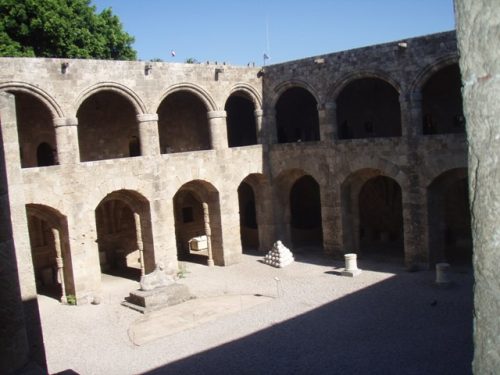 Les Thermes de Kalithéa ont été construits en 1923 par les Italiens autour d’une source déjà citée par Hippocrate. De la source, nous ne verrons rien. En revanche des installations rénovées entourent une très jolie crique. Précédé par un grand parking, un portique élégant accueille les visiteurs. On passe devant un bassin rond orné de nombreux jets d’eau et entouré d’une mosaïque de petits galets noirs et blancs. Des portiques aux colonnes assez basses d’un blanc éblouissant imitent les fûts des palmiers nous font songer aux bains Gellert de Budapest au décor Arts Déco. Un petit édifice à coupole trouée imite un hammam turc. On y descend par un escalier d’un blanc éblouissant. On peut aussi emprunter un cheminement dans des jardins sous des portiques.