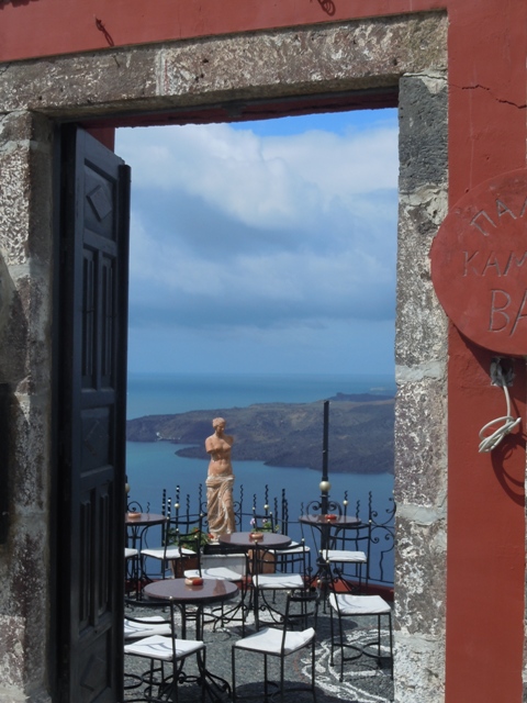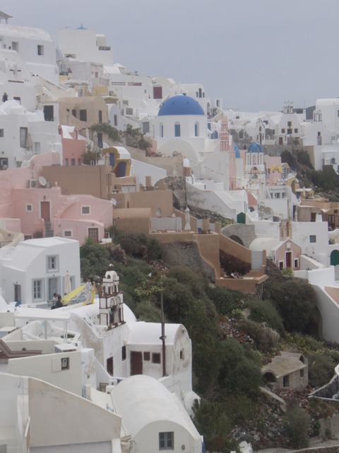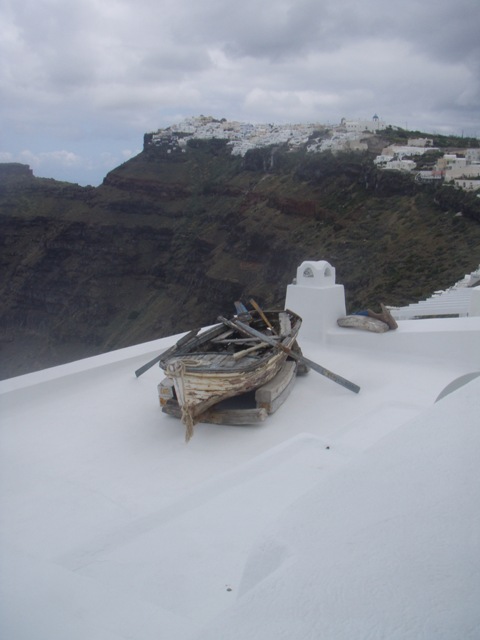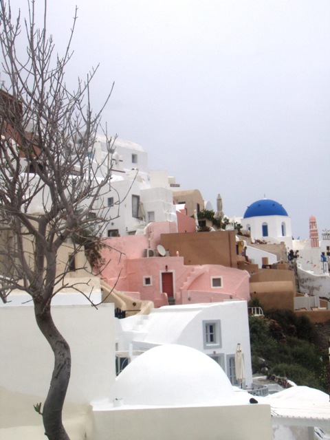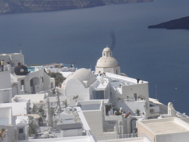 Il y a encore d’autres musées à Fira malheureusement très envahie aujourd’hui par les croisiéristes qui portent des autocollants. Le temps est chaud, presque lourd malgré les nuages