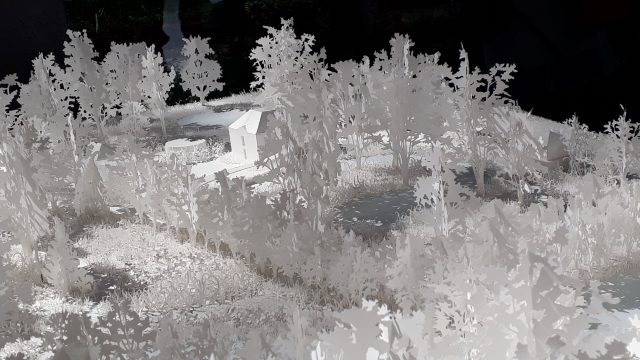 Déconstruction que ce Conical Intersection (1975) : découpe d’un vieil immeuble en face du chantier de construction du Centre Pompidou cherchant à pratiquer une lentille à travers l’ancien Paris des Halles pour voir le chantier du futur musée. Il a filmé cette démolition selon une découpe savante.