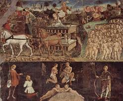 Le Château d’Este est superbe avec ses tours carrées, ses créneaux, balustrades, douves. Nous déjeunons à la terrasse d’une birreria installée dans un pavillon de verre et fer (art déco ?) accolé au château. (Salade compose trévise, roquette, frisée, maïs, tomate mozzarella et thon) devant la statue de Savonarole né à Ferrare en 1452. Le personnage de Savonarole ne m’inspire pas tellement de sympathie, réforme contre les abus et la corruption mais surtout intolérance. Au dessus du portail du Palazzo Municipale deux personnages trônent : le duc Borso et le Marquis Niccolo III.