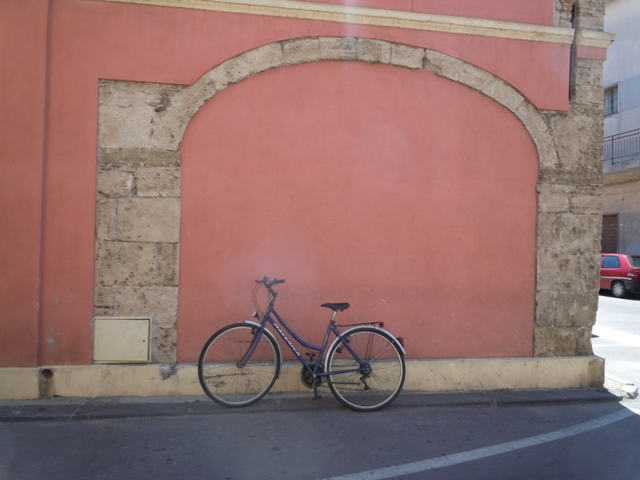 Après la Tour Sulis ,le Lungomare est bordé de grosses villas carrées roses, bleues, jaunes, elles sont occupées maintenant pas des hôtels. Plus loin, il y a une petite plage et ensuite les immeubles de la ville moderne. C’est là que nous cherchons – et trouvons – au supermarché SISA, un pique-nique gastronomique : salade de poisson blanc (peut être du colin) et des beignets de petits légumes : fleurettes de brocolis, languettes de courgettes, rubans de poivron rouge. Pour un tel festin, il faut un emplacement de choix. Et nous le trouverons !