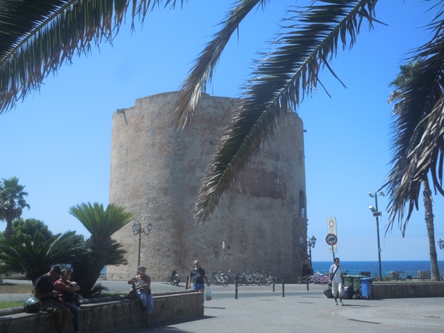 La ville historique d’Alghero, enclose dans ses remparts est piétonnière. Nous trouvons une place pour la voiture près de la Tour Sulis et coupons à travers la ville par la via C Alberto où se trouve une belle librairie qui possède un rayon de livres en français surtout