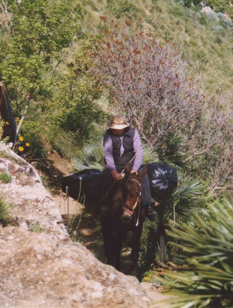 Sur le plateau de La Chiesa Madre, rencontre insolite : des chèvres sont juchées sur un rocher. Un vieillard à la longue chevelure blanche, à la silhouette cassée s’appuie sur un curieux bâton au pommeau rouge vif bariolé entouré bizarrement de chiffons. Le chevrier ? Non, il se dirige vers l’église. Comme je lui demande si l’église est fermée, il lève la main d’un geste d’impuissance sans me répondre et détourne la tête .On dirait un pèlerin qui a fait vœu de silence jusqu’à la fin de son ascension.