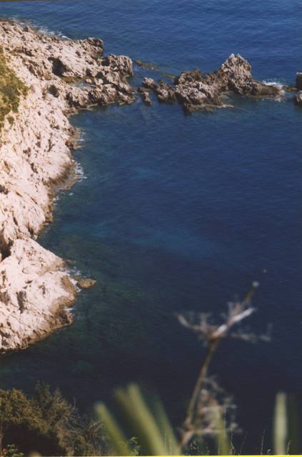 Parties à 9h15, nous nous installons vers midi dans une petite crique après avoir marché seulement 5 km selon la carte . Ne jamais se fier aux distances sur ces petits sentiers qui montent et descendent ! Ecomusée des contadini