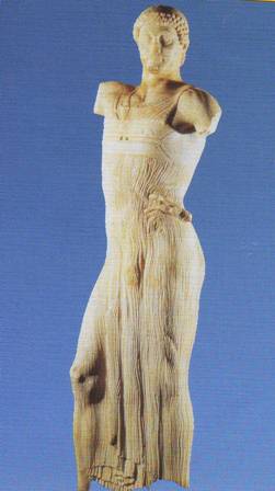 Le Musée ouvre en principe à 15h, mais comme nous sommes les seules visiteuses on nous laisse entrer avant. A l’entrée se trouve l’Ephèbe de marbre que je connais déjà par la lecture de Fernandez. Il imagine qu’il s’agit d’un androgyne à cause de sa robe légère plissée féminine. Les ephébes étaient représentés nus et les femmes habillées. Dans les autres salles beaucoup de « pots cassés ». Plus intéressantes :les stèles qui montrent des personnages originaux très différents des Grecs avec des coiffures plutôt égyptiennes A côté de ce musée moderne, les collections Whitaker . Le personnage de Whitaker fait penser à Schliemann.