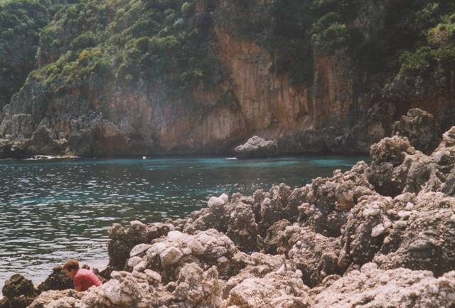 Nous partons en short pour la réserve de Zingaro située juste après la Tonnara sur le petit cap qui sépare Scopello de San Vito lo Capo sur une montagne très sauvage, escarpée et aride.