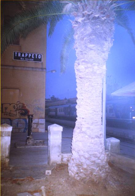 A 18h, je fais la queue pour mon billet. Heureusement que je me suis prise à l’avance, l’informatique est récalcitrante, il faut attendre 20 minutes pour obtenir un billet de banlieue.Le petit train de deux wagons part vide de la Gare Centrale, il se remplit aux autres stations de Palerme. Il longe la mer. Le soleil se couche dans de belles teintes flamboyantes ? C’est le premier soir sans nuages .