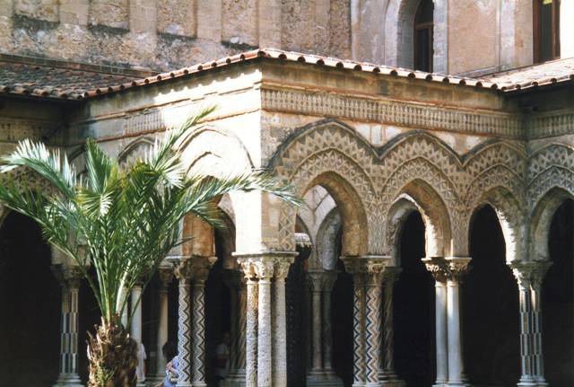 Sans porter un regard au portique baroque, j’entre dans le petit jardin de la Magione. Datant de 1150 de style arabo-normand, appartenant à un monastère cistercien. Le nom de Magione vient des Croisades pour lesquelles elle fut un lieu important. Le jardin, la sobriété de la façade contraste avec les églises baroques que je viens de voir. Le joli petit cloître est reposant.