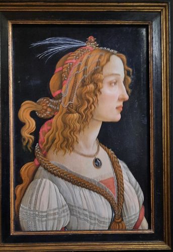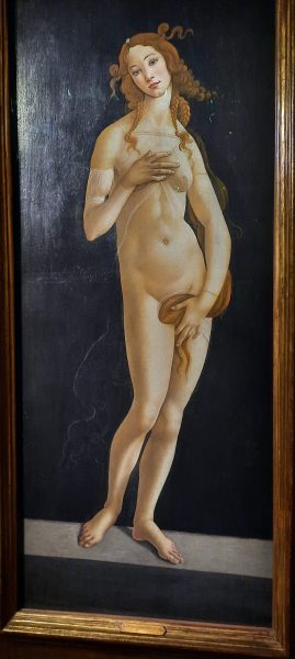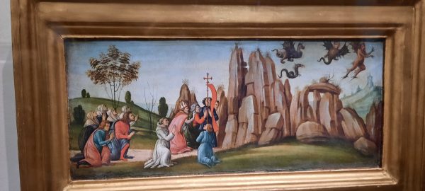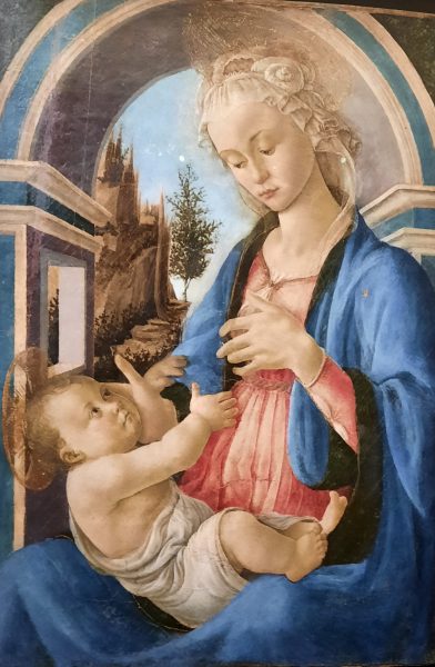 L’exposition s’ouvre sur les lignes de Dante et un manuscrit sur parchemin, puis sur la biographie que Vasari lui a consacré en 1568. La Vierge et l’Enfant de Botticelli entra au Louvre en 1802 sous le nom de Cimabue, pourtant on reconnait le style de Botticelli!