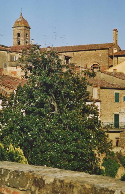 Une dame qui arrosait ses fleurs, me fait traverser la route très passante (Arezzo-Pérugia) pour me montrer le parking.