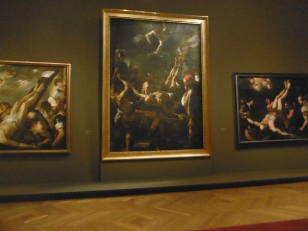 Artemisia voyage, s’installe un temps à Venise, puis à Naples métropole presque aussi peuplée que Paris, sous la domination espagnole. La vie artistique y est aussi très violente. Les échafaudages des peintres étrangers s’effondraient, les couleurs de leurs fresques s’effaçaient . Trois artistes faisaient régner la terreur, à leur tête Juseppe de Ribera (dont j’ai vu l’exposition l’hiver dernier au Petit Palais ICI