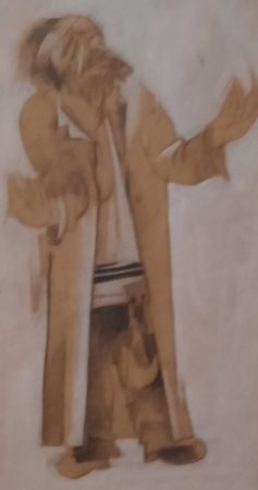 La première version de la pièce fut écrite en Russe(1917), puis traduite en Hébreu (1918) et en Yiddish (1919). Elle fut adaptée au cinéma par Michal Waszynski (1937) . C’est cette version projetée qui accueille le visiteur de l’exposition : La jeune fille danse avec son fiancé mort avec une tête de squelette dans la « danse des mendiants »