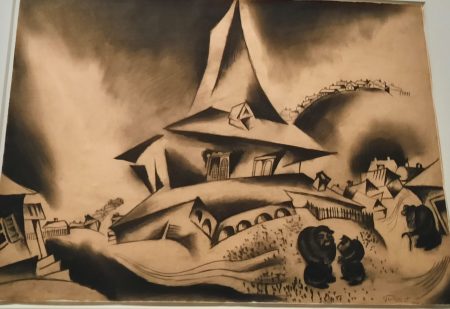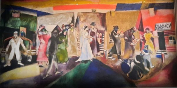 L’exposition présente des dessins et tableaux de contemporains de Chagall comme Nathan Altman ou Ryback dans une version cubiste.