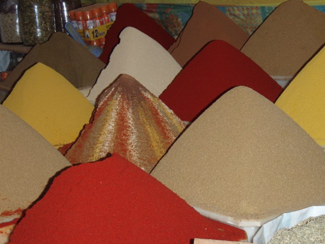 Latifa nous accompagne au souk pour marchander pour nous des épices. Elle demande un mélange ; 50g de cumin, de cannelle, de coriandre et nous emportons le tout pour 30dirhams.