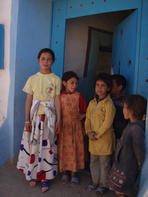 Une nuée d’enfants nous accueille au village. Malgré notre guide nous entendons « Donne moi… » . Pour les dirhams, c’est non ! Et tous les adultes sont d’accord. Pour les bonbons, nous en avons un sac dans la voiture et c’est le bon moment pour rendre la politesse aux villageois qui nous accueillent si généreusement. La distribution tourne à l’émeute. Les enfants accourent de partout. Certains tendent la main plusieurs fois. On commence à se fâcher. Un adulte doit s’en mêler.