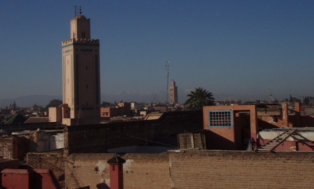 De la terrasse haute où nous prenons le petit déjeuner, nous dominons une infinité de terrasses, de volumes compliqués, de patios, de puits de lumière. Les paraboles qui constellent les toits retirent un peu de poésie, peut être ; mais correspondent tout à fait à la réalité d’aujourd’hui. Le moindre village du Haut Atlas capte le monde entier par le satellite. Le problème est de savoir ce qui fait rêver le Marrakchi ou le Berbère de l’Anti-Atlas. Les feuilletons égyptiens ? Les séries françaises ou les prières d’Arabie ?
