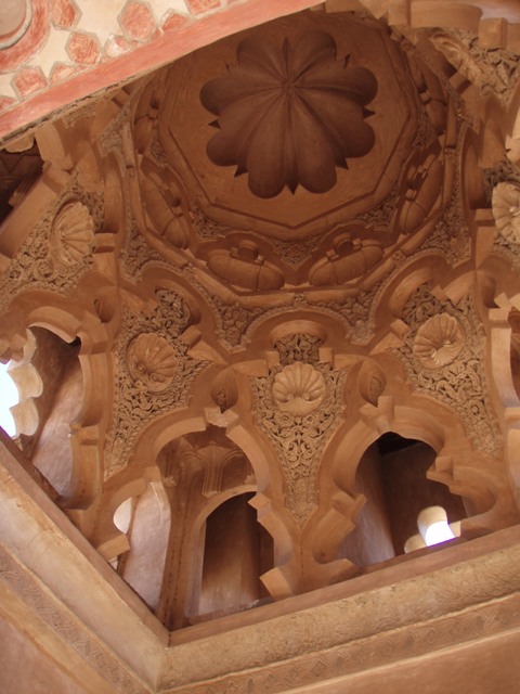 Nous ne connaissions pas la Kouba Almoravide . Petit mausolée blanc avec une coupole au décor compliqué. Pour admirer sa construction sophistiquée il faut descendre quelques marches et lever la tête. Tout un complexe hydraulique : fontaine, latrines, citerne… se trouve dans un enclos.