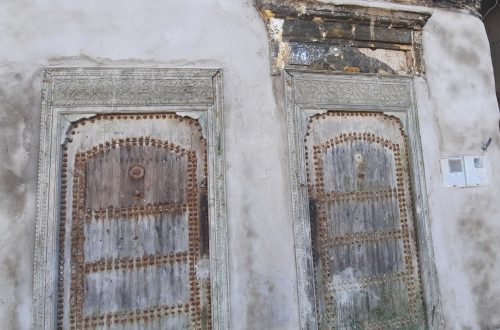 Les maisons du village sont très basses. Les longs murs ne s’ouvrent que par des portes métalliques peintes avec fantaisie. On a le souci de la décoration. Les tours des fenêtres, les coins, les arêtes sont soulignées de blanc sur crème ou de jaune sur blanc. Quelques uns ont peint des éclaboussures à la manière d’un feu d’artifice ou de palmier: