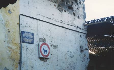 Partout on a installé de la paille et des petits sacs d’orge destinés aux moutons de la fête qu’on voit circuler dans des chariots à roulettes poussés par des hommes « Balek ! »Il faut se pousser, s’ effacer pour laisser le passage à un mulet ou à un âne lourdement chargé. La médina est interdite au trafic automobile. Certaines rues portent le panneau rond bordé de rouge représentant un quadrupède « interdit aux ânes et aux mulets ».
