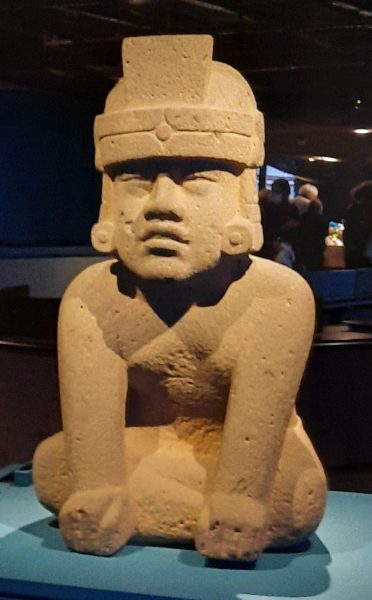 Un film introductif nous présente l’empire Mexica qu’on appelait Aztèques. Cette population ayant migré du Nord et fondé en 1325 Tenochtitlan – sa capitale – sur une île sur le lac Texcoco à l’emplacement actuel de Mexico. Ville de 200 000 habitants construite sur l’eau.