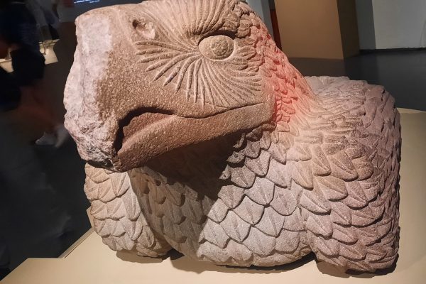 Découverte d’une civilisation, d’une histoire, d’une mythologie dont je ne soupçonnais pas l’existence. Je suis perdue, éblouie, bluffée, ahurie. j’en perds même les réflexes habituels : noter sur mon carnet, recopier les cartels. Que noter? Que recopier? Les noms sont si difficiles à lire, je serais en peine de les énoncer de mémoire tant ils sont étranges.