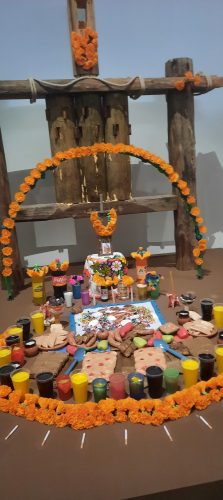 La fin de l’exposition montre que la culture mexica reste vivante en syncrétisme avec la foi chrétienne.