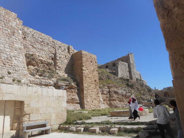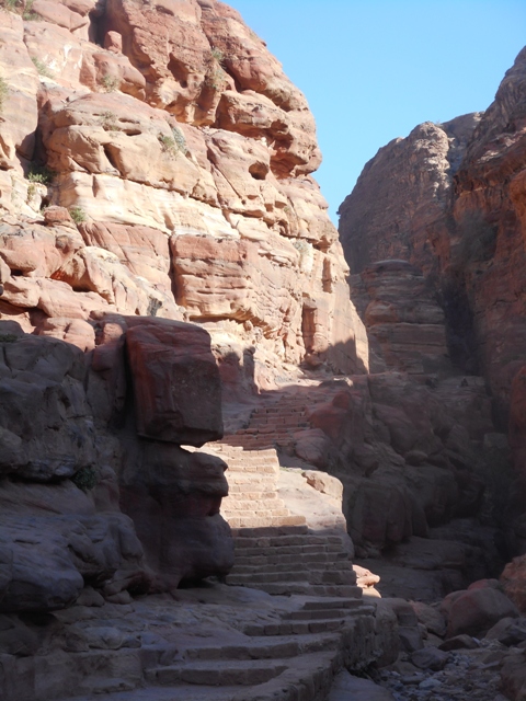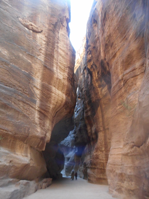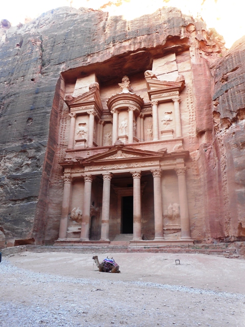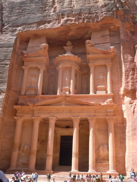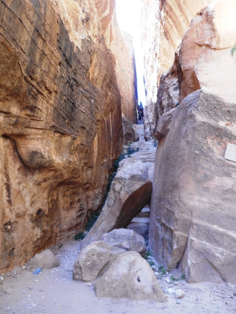J’écoute d’un air faussement distrait un guide francophone qui montre une caravane en bas relief dans la roche. Plusieurs chameaux sont figurés ainsi que les pieds des caravaniers. Un caravanier sans tête est debout vêtu d’un manteau ou d’une tunique drapé au plis bien visibles. On distingue les lanières des sandales.