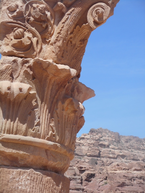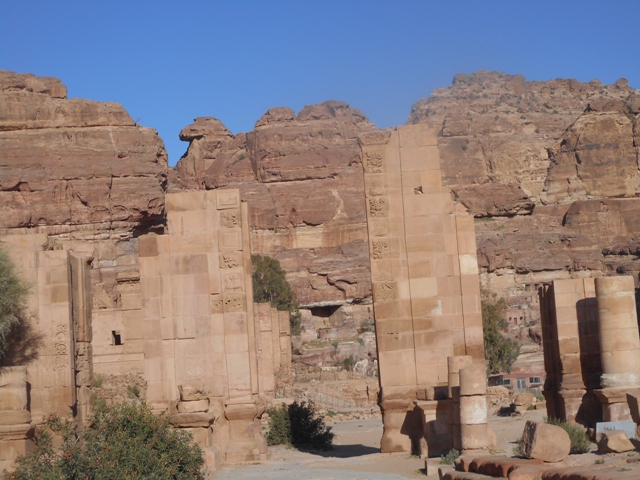 La rue des colonnes est soigneusement dallée, elle passe sous une arche Temenos (125-225 Ap JC)de conception romaine . Les colonnes soutenaient des galeries couvertes abritant des magasins pour les marchandises en provenance d’Afrique et d’Arabie.