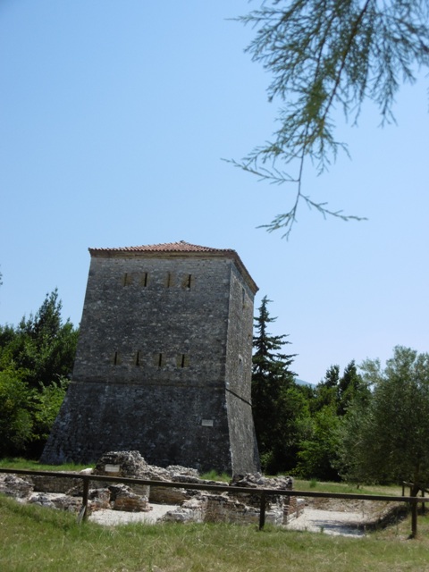 Le Baptistère rond est le monument emblématique de Butrint, photographié avec ses mosaïques sur les dépliants et affiches., photographié vu du dessus. Latéralement, les mosaïques cachées, on distingue mal la structure circulaire, il me déçoit un peu.
