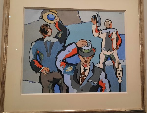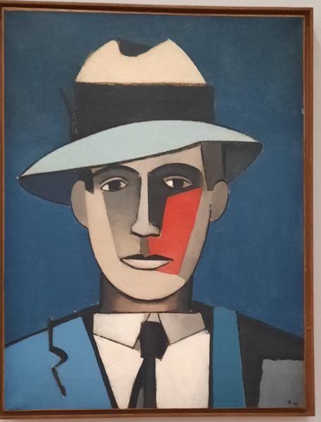 les couleurs vives font leur retour, surtout les rouges. Articles obsessionnels de l’artiste, les chapeaux, parapluies, mannequins pour des personnages encore très cubistes et rigides.