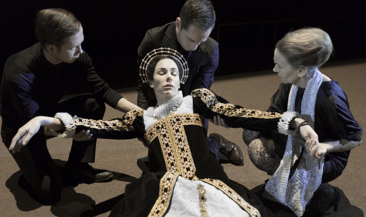 Pendant les premières scènes j’ai du mal à identifier les personnages masculins et à situer l’action. Mary est prisonnière. Elle sollicite une entrevue à Elisabeth. Cette entrevue est un morceau de bravoure. Chacune défie l’autre, la provoque, devant un parterre de courtisans dont on ne sait pas à qui va la loyauté. Mary, la séduction. Elisabeth, l’autorité. Toutes les deux femmes de pouvoir. la gestuelle est chorégraphiée. On oublie le texte traduit on suit le langages des corps.